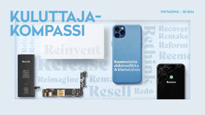 Mikä suomalaisia mietityttää käytetyn elektroniikan ostamisessa? Kuinka moni on valmis hankkimaan käytetyn puhelimen? Vuoden 2024 ensimmäinen Kuluttajakompassi tarkastelee suomalaisten suhdetta kiertotalouteen sekä erityisesti kierrätettyyn elektroniikkaan.