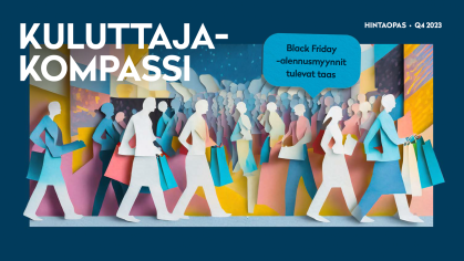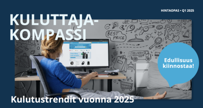 Hintaopas.fi-palvelun neljä kertaa vuodessa julkaistava kuluttajakompassi yhdistää ajankohtaiset kuluttamisen teemat, Hintaoppaan kävijadatan sekä kuluttajilta kysyttyjen tutkimuskysymysten tulokset yhdeksi kokonaisuudeksi – jotta sinä voit tehdä fiksumpia valintoja.