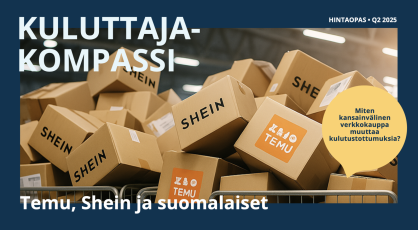 Miten Temu ja Shein vaikuttavat kotimaisiin kauppoihin? Entä ovatko kuluttajat todella tyytyväisiä ultrapikaverkkokauppojen tuotteisiin? Vuoden 2025 toinen Kuluttajakompassi luo syväkatsauksen suomalaisen ja kansainvälisen verkkokaupan tilaan.